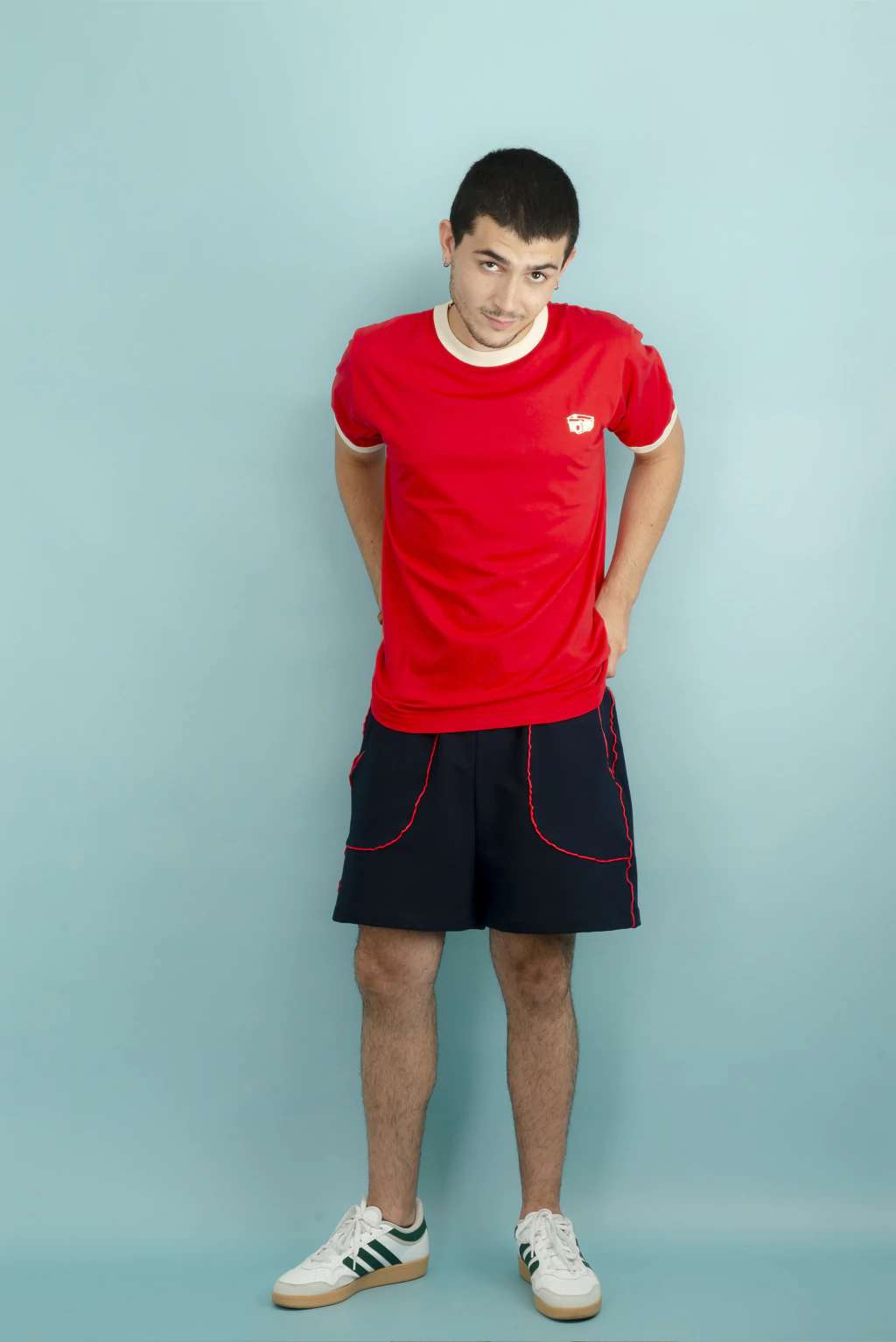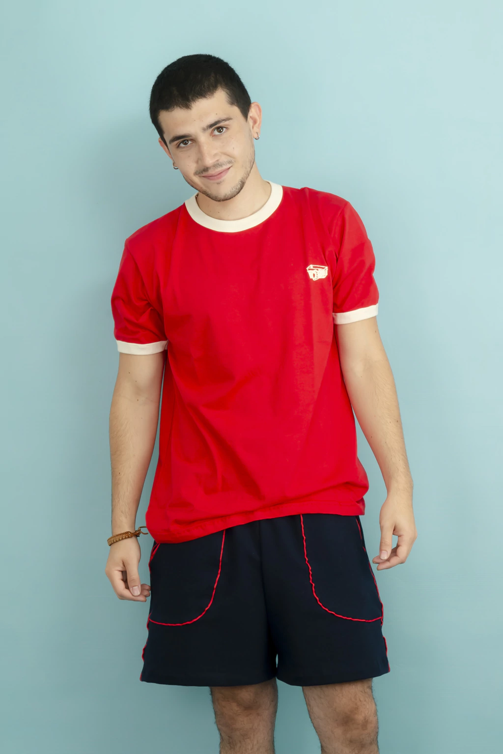 Reme confeccionada en Jersey peinado ROJO con rib a contratono en crema. esta reme la estampamos con una camarita.
